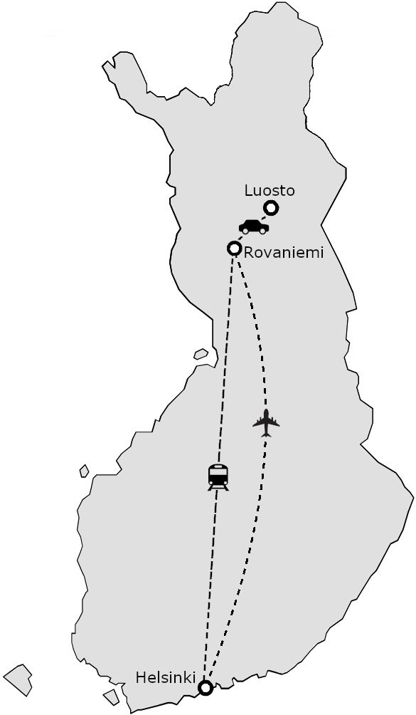 Did you know that you can also get to Deluxe Luosto without a car? Rovaniemi can be reached by plane or train several times a day. The Skibus bus runs between Rovaniemi and Luosto (113 km) up to 4 times a day in winter, and 2 times a day in summer and autumn!